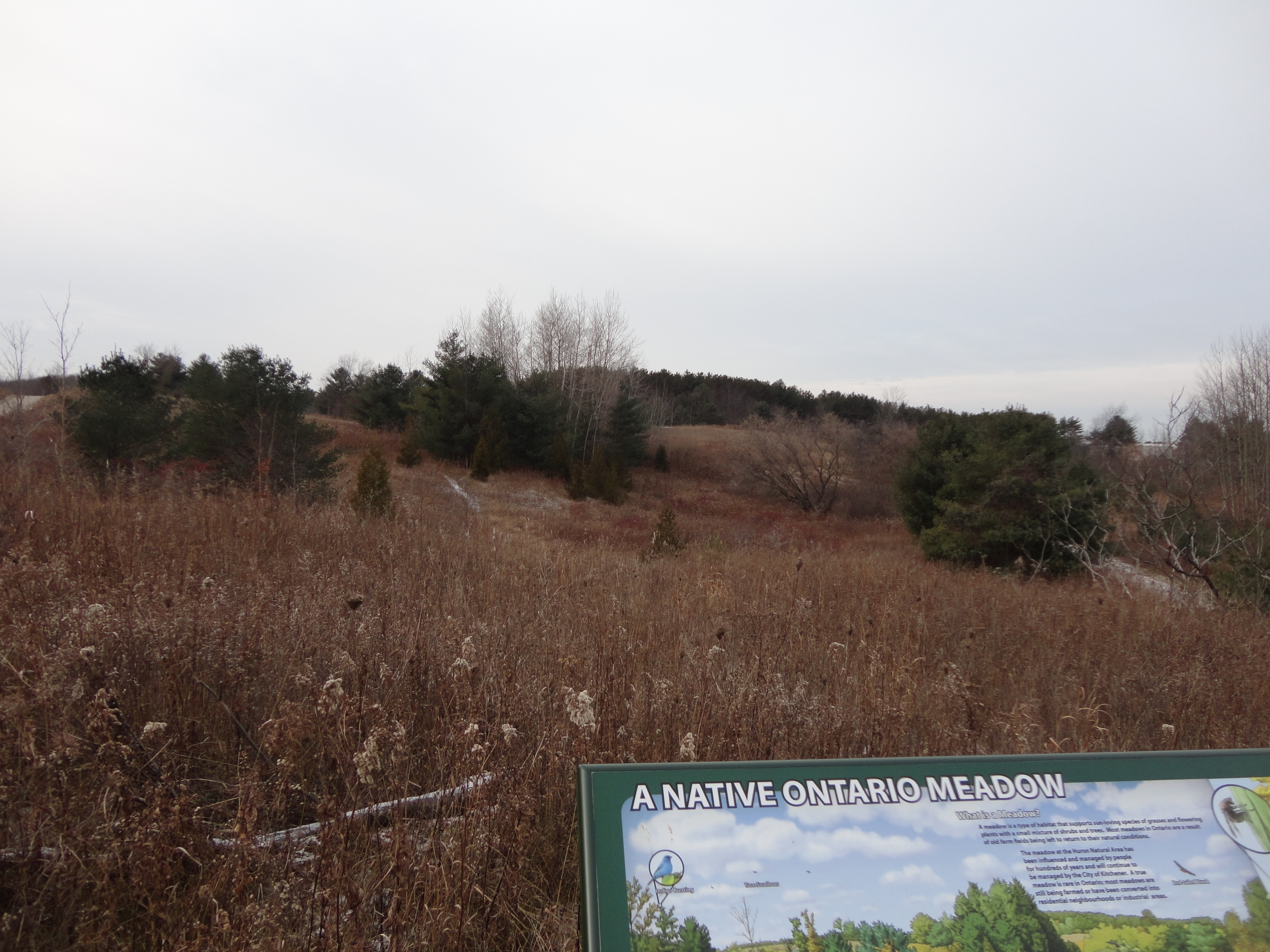 Stewardship events take place quite frequently in the Huron Natural Area, and school groups often visit. In February 2014 there will be winter wildlife tracking workshops and owl education outings held as a part of the Kitchener Natural Areas program. The site is equipped with an attractive public washroom with a green roof and interpretive monuments near the parking lot. Paved walkways make the location accessible to bikes and wheelchairs, and the terrain is easy to medium difficulty with steep hills in some areas.