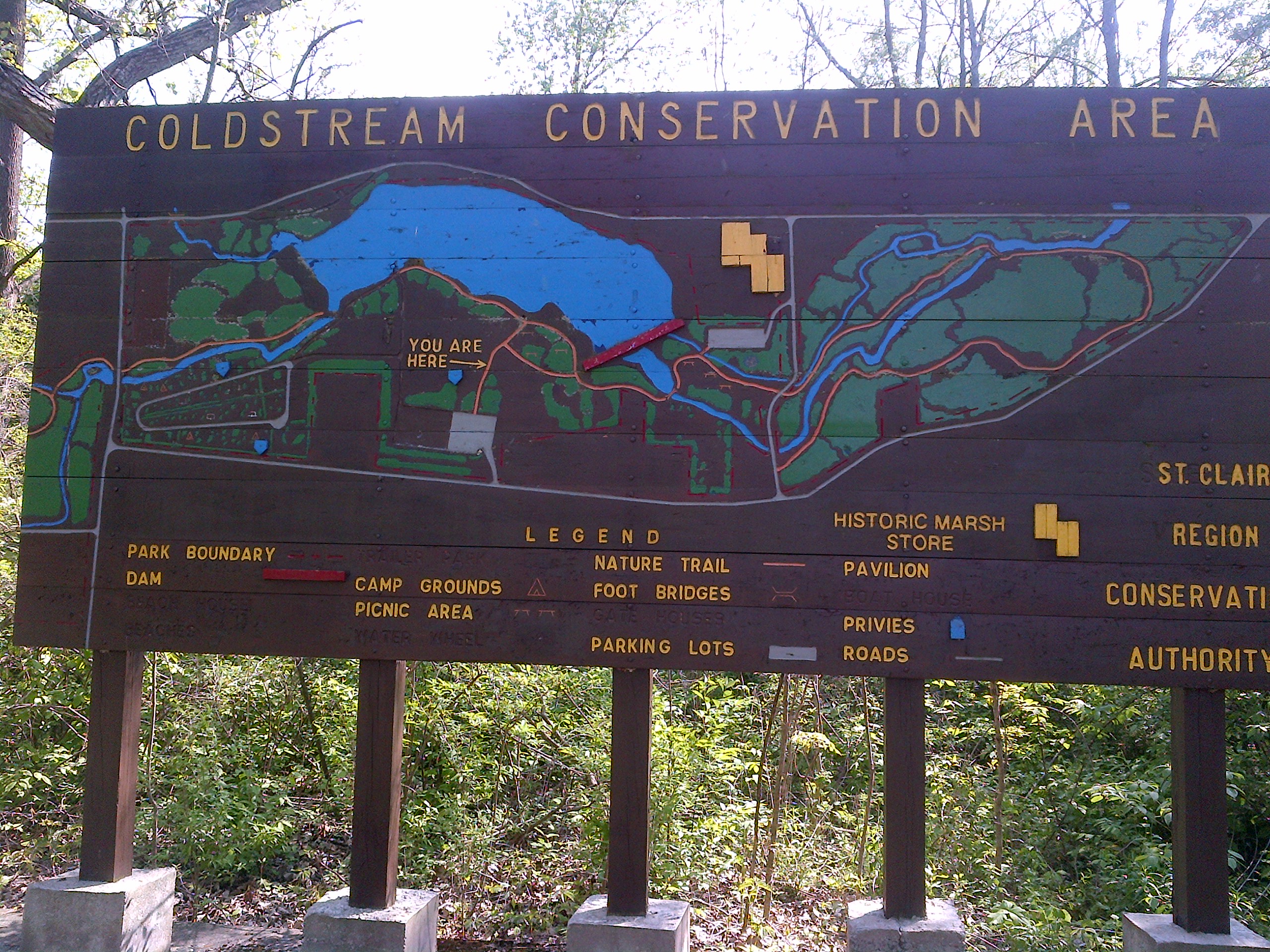 If you enjoy viewing plentiful wildflowers and diverse bird species along a well-maintained board walk, you will definitely want to visit Coldstream Conservation Area! The Conservation Area has two main trails; one at the south end, which runs through a cedar swamp (a rare type of wetland in Southern Ontario), and a trail on the north end which starts off along an abandoned gravel pit and winds its way through a floodplain forest (Ontario Trail Council, 2014).