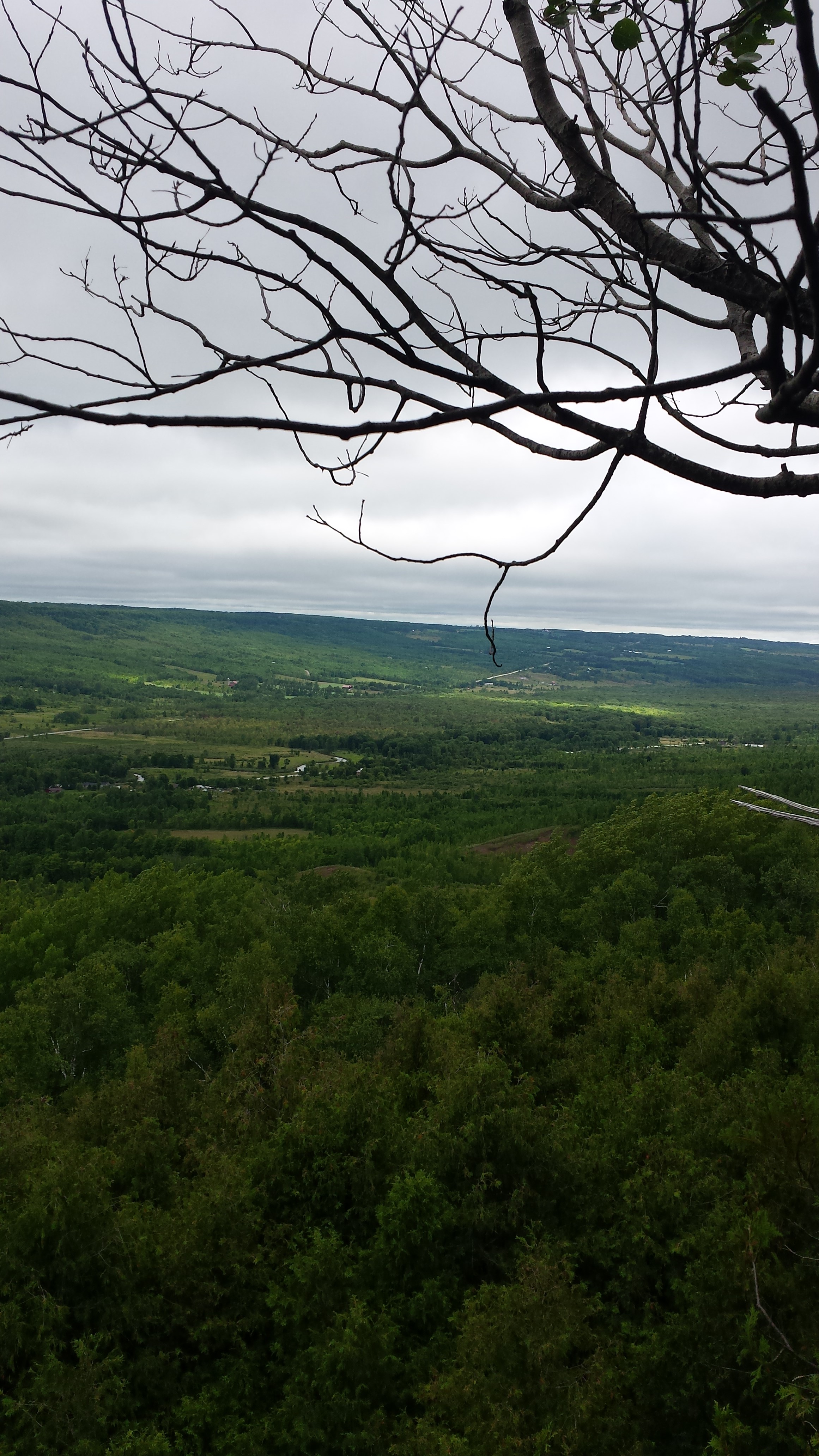 Although I visited this hiking spot on a grey, cool, and overcast August day, the views were still spectacular. Old Baldy, a part of the Niagara Escarpment, rises 152 metres above the Beaver Valley (Grey Sauble Conservation, 2013). You have to walk about 15 to 20 minutes through open pasture and forest cover to reach the lookout point, but it’s well worth the occasionally rugged terrain (Ontario Trails, 2014).